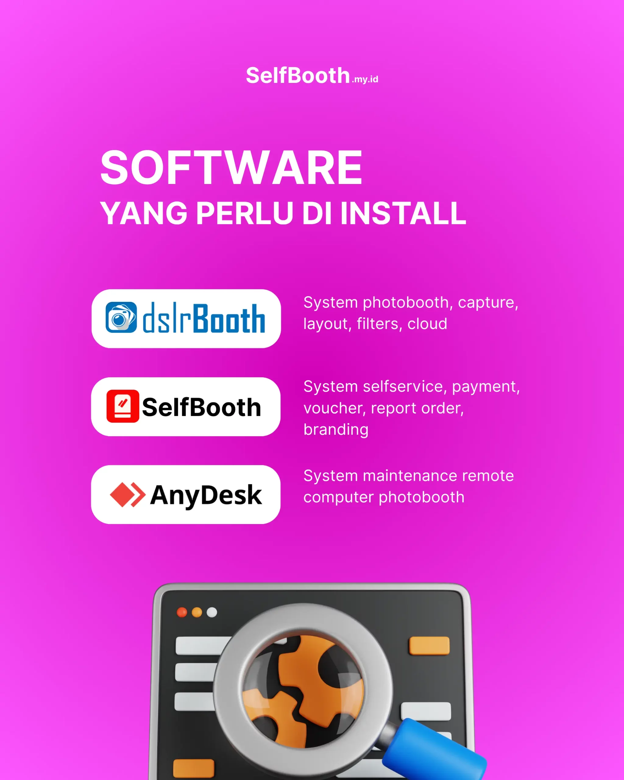 Selfbooth adalah aplikasi yang berfungsi menambahkan fitur selfservice photobooth saat menggunakan aplikasi dslrBooth.