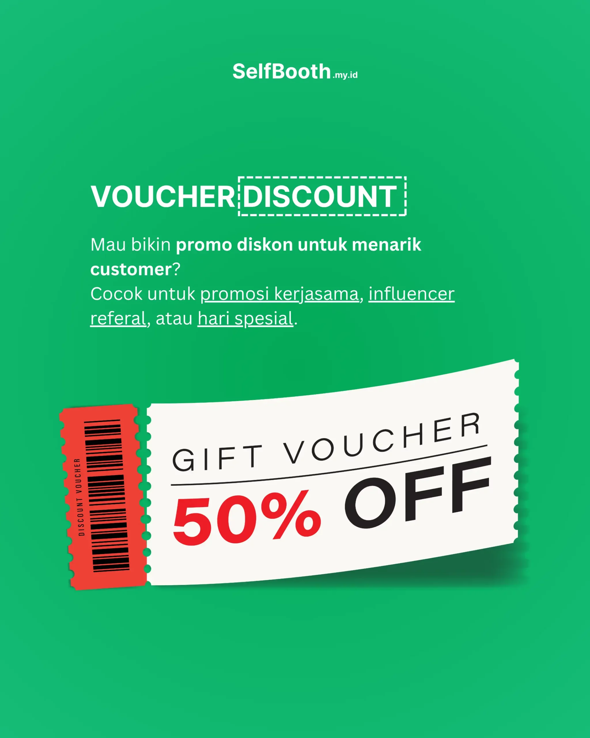 Buat promo menarik dengan tambahan voucher diskon 10%, 20%. Cocok untuk promosi, atau kerjasama dengan influencer(referal)